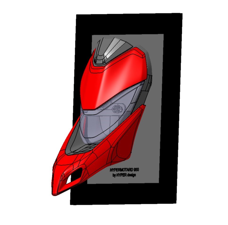 Front Nose Artwork of a Ducati Hypermotard 950 – 3D Printed and Hand-Painted